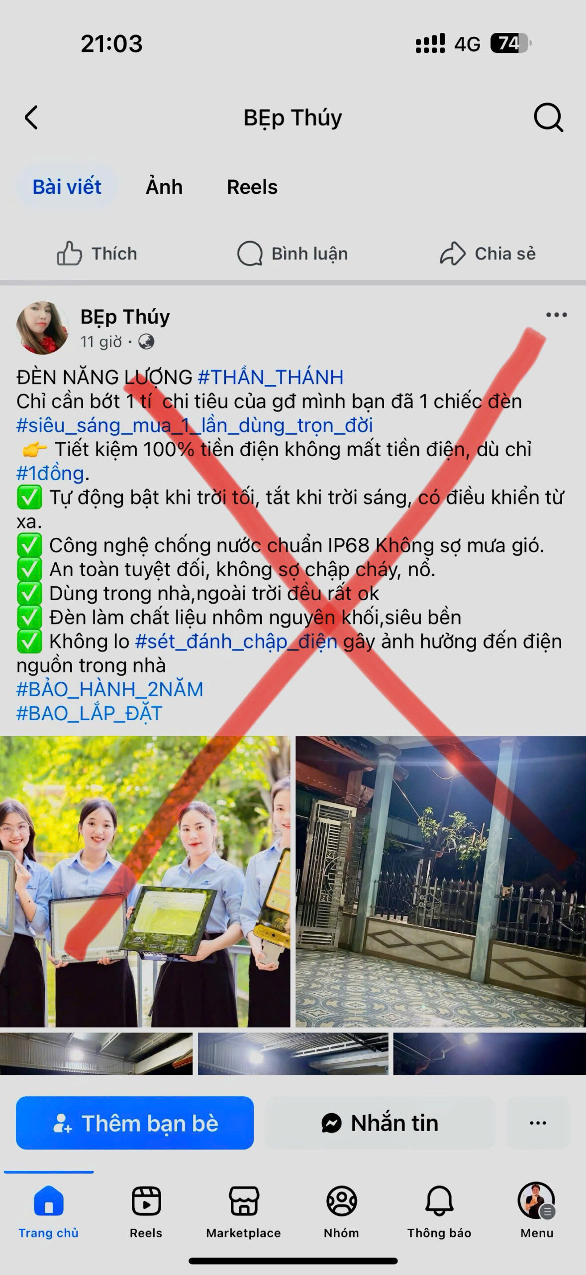 Những hình ảnh đang được sử dụng trái phép bởi một nick facebook “BẸp Thuý”